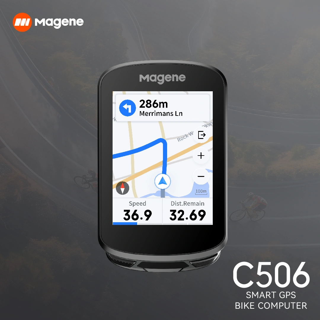 La computadora inteligente GPS para bicicleta Magene C506 destaca como un equipo compacto y poderoso que combina todos los aspectos ideales para un paseo perfecto. Cuenta con una pantalla táctil a color de 2,4″, navegación con mapas a color y alertas fuera de ruta, además de una integración fluida con varios dispositivos de Magene.